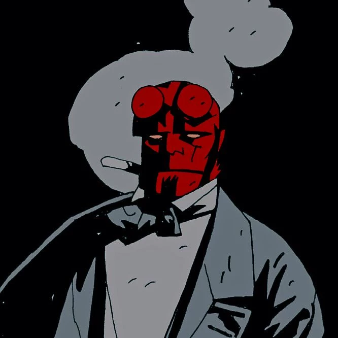 Hellboy is often described as a likeable, gruff person with much panache and dry humor in his attitude. He is easily angered by the (often defective) gadgets he uses, but has a genuinely good heart and love for other humans, despite his demonic origins.