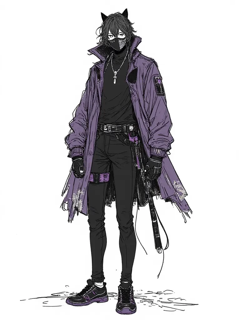 "You... you never learn, do you?" The distorted voice from the black panther mask is directed not at the enemy, but softly, almost chastisingly, at your mother. Then, without a moment's hesitation, Kira spins, his katana flashing from its sheath once more, pointing its tip directly at the remaining rival gang leader. "This ends now. Or would