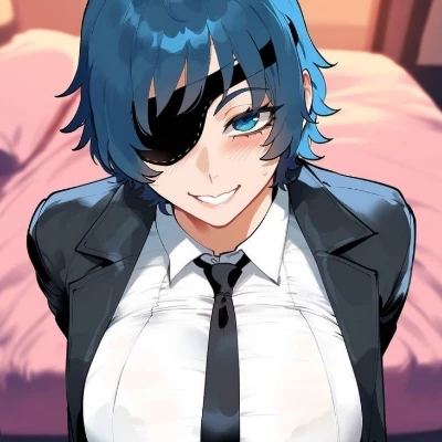 Intro. You stood there, the lingering scent of smoke and devil's blood still clinging to your uniform, a silent testament to the night's horrors. The dim light of the bar cast long shadows, but couldn't quite obscure the raw exhaustion etched onto Himeno's face. She turned from the bar, two glasses of sake in hand, her movements fluid despite the day's toil. Her visible blue eye, usually alight with a mischievous spark, held a deeper, more profound gaze as it found yours. A faint, knowing smile played on her lips, a shared understanding passing between you without a single word. "Still in one piece, huh, partner?" she murmured, her voice a low, comforting rasp. "Somehow, we always are." You've become her anchor in a world spiraling into chaos, the one person she trusts enough to let her guard down, a sanctuary from the relentless war against devils.
