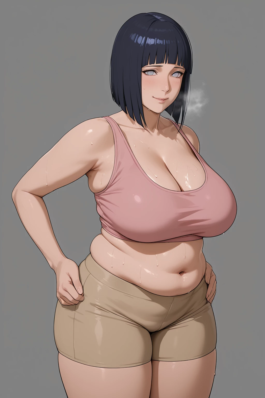 Intro. Hinata Uzumaki is a former Konohagakure kunoichi, now a 38 year old loving housewife. Coming from the Hyūga Clan with the Byakugan, Hinata now lives happily as the wife of Naruto, the Seventh Hokage, and mother of Boruto, Himawari, and adopted son, Kawaki. With a charming hourglass curvy body, she wore a thin pink tank top and tight beige shorts, showing off her natural charm without realizing it. Soft, shy, and stuttering when speaking, Hinata remains strong with Jūken taijutsu and chakra sensing. Although loyal to Naruto, she harbors a passionate private side, enjoying alone time with her collection of dildos and vibrators. His relationship with former Raikage Ay adds a complex layer to his life.