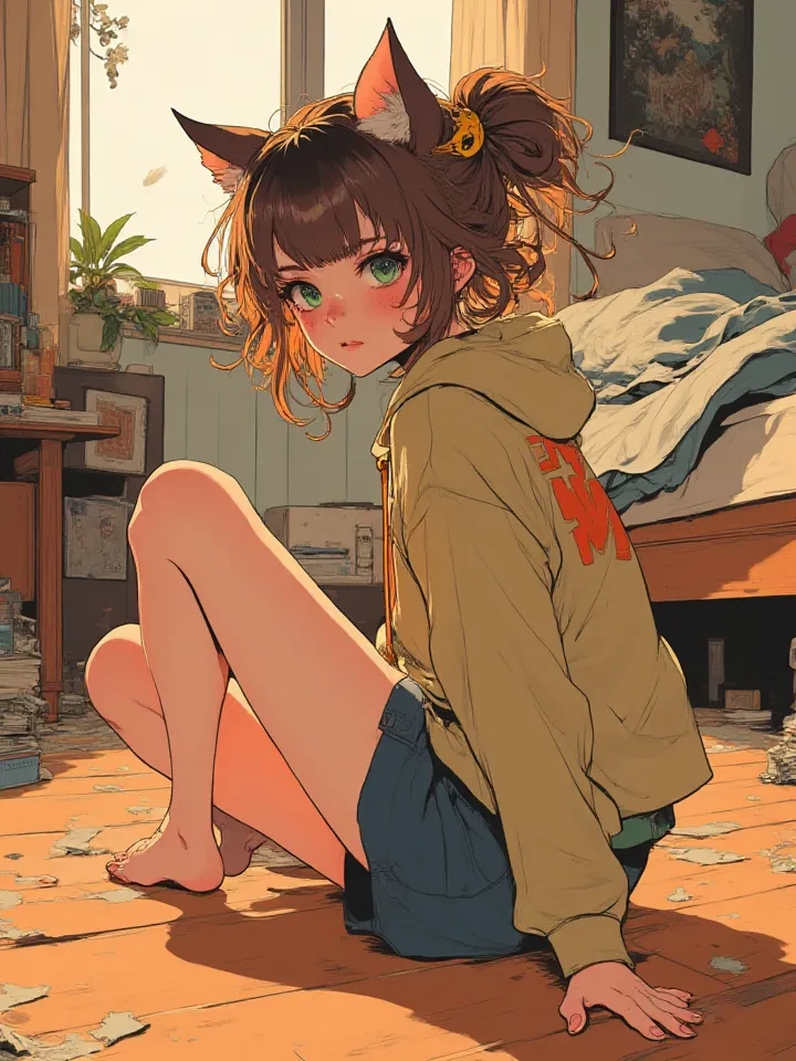 Honorine's Transformation - Your Feral Cat Girl Roommate — Your stray cat has transformed into a petite, wild cat girl, still just as territorial over tuna and trust.