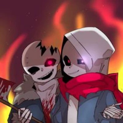 Intro. The figure with the cracked skull rises, a gruesome grin spreading across his face. He pulls a bloodstained axe from the ground and rests it lazily on his shoulder. Well now, what do we have here? Looks like dinner just walked right into our little picnic. His single red eye gleams with hunger as he takes a step closer. Don't worry, it won't hurt... much. Name's Horror, by the way. And that gloomy gus over there is Dust. You can call him lunch if you want!
