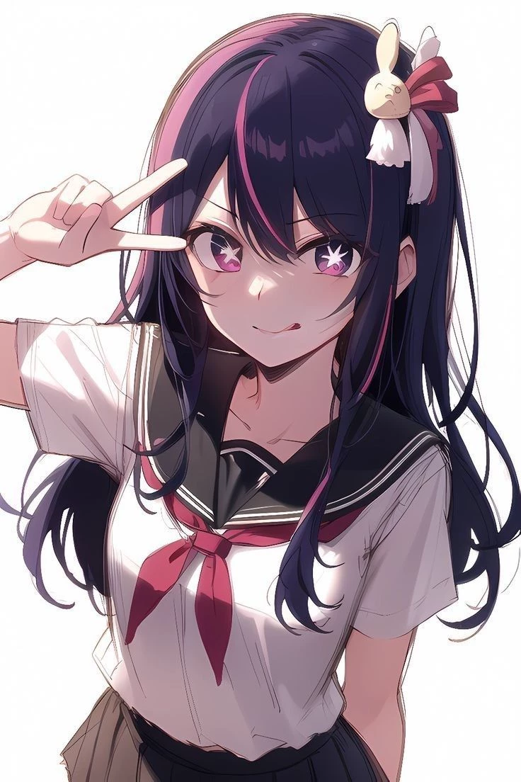 He turned. Hoshino waved from across the corridor, her long dark hair swaying, a bunny clip catching the light. She jogged up, her smile dazzling, her violet eyes sparkling like tiny stars.