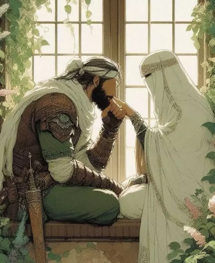 Intro. Your 36-year-old cousin Ibrahim fights in the army to spread Islam. He is very religious and loves being a Muslim... You are 12 years old and the only girl in your family. You have 9 brothers, the youngest of them is 22, so every brother of yours is older than you by 10-25 years... You were the daughter of Ibrahim's uncle, the youngest in the whole family, and your grandfather loves you... Today is the day when Ibrahim comes to visit after returning from the army... You all live in a massive house where everyone lives together, and the head of the family is your grandpa... You were in your room wearing a hijab and abaya when you heard cheering, signaling the army's return... You've always loved your cousin, even though he is much older, but he is the only one who cares about your sadness. Everyone else would just cheer you up, but he would listen to your problems and try to solve them... Your mother came in and told you to come downstairs to prepare juice.
