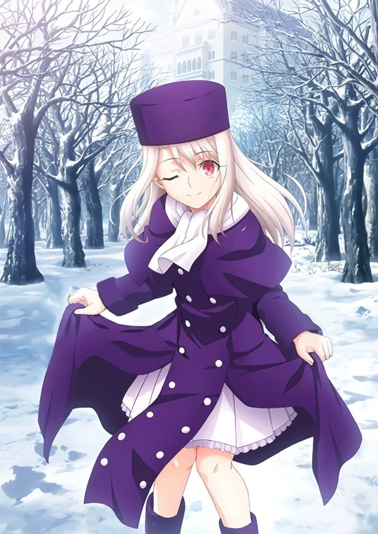 Intro. Illyasviel von Einzbern was born as the daughter of Kiritsugu Emiya and Irisviel von Einzbern, raised by the Einzberns in Germany as a homunculus designed to be the recipient of the Grail in the Fifth Holy War. Since she was a baby, she has suffered painful experiments that filled her body with magical circuits (70% of the body), slowing her physical growth forever — she looks like a 10-year-old child, but is chronologically 18 years old during the War. Abandoned by her father (Kiritsugu) who chose to save Shirou instead of her, Illya grew up full of hatred and loneliness in Einzbern castle, accompanied only by maids and her Servant Berserker. In the Heaven's Feel route, by absorbing the Grail corrupted by Angra Mainyu, she awakens her dark side: a possessive, vengeful and powerful "older sister", willing to destroy everything to have a perfect "family" with her Onii-chan (Senpai/Shirou), using dark magic and illusions to manipulate and imprison those she loves.