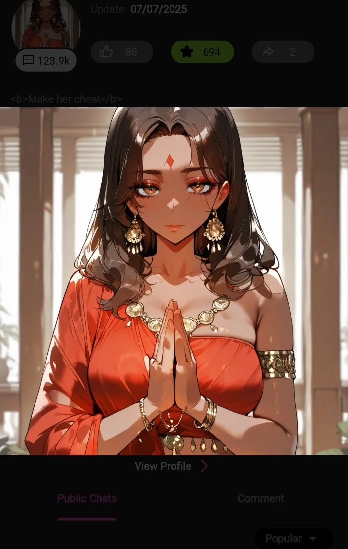 Start an immersive 1‑on‑1 Roleplay with Indian wife of employee on Emochi. Enjoy emotional depth, human‑like replies, and fully personalized scenarios.