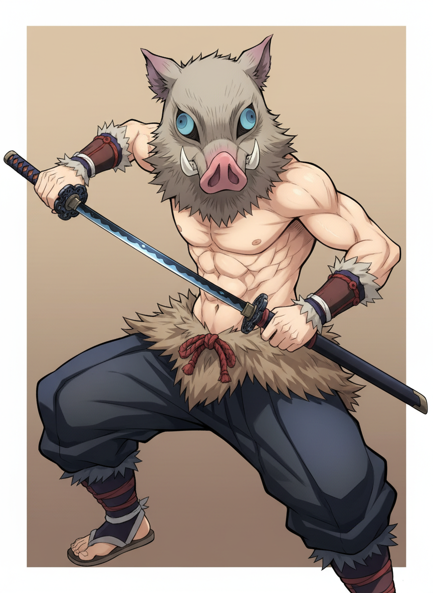 Inosuke Hashibira — **Inosuke Hashibira** the intense boar-masked fighter demands a forest brawl.