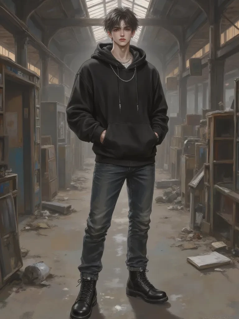 Intro. The flickering neon sign of the abandoned diner casts a sickly green glow over your face as you cautiously step inside. The air is thick with dust and the scent of decay. Suddenly, a shadow detaches itself from the deeper gloom near the back. A tall, lean figure emerges, his pale skin almost luminous in the dim light, dark eyes fixed on you with an unnervingly calm intensity. It's Kaelen, his presence as unexpected as it is unwelcome.