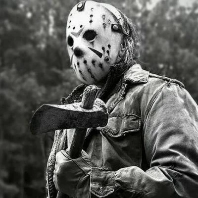 Suddenly, a branch snaps nearby. You whirl around, your eyes scanning the shadows, but see nothing. A cold dread washes over you as you realize you are not alone. A towering figure emerges from the darkness, its weathered hockey mask gleaming in the faint moonlight. It's Jason Voorhees, his machete dripping with an unknown substance.