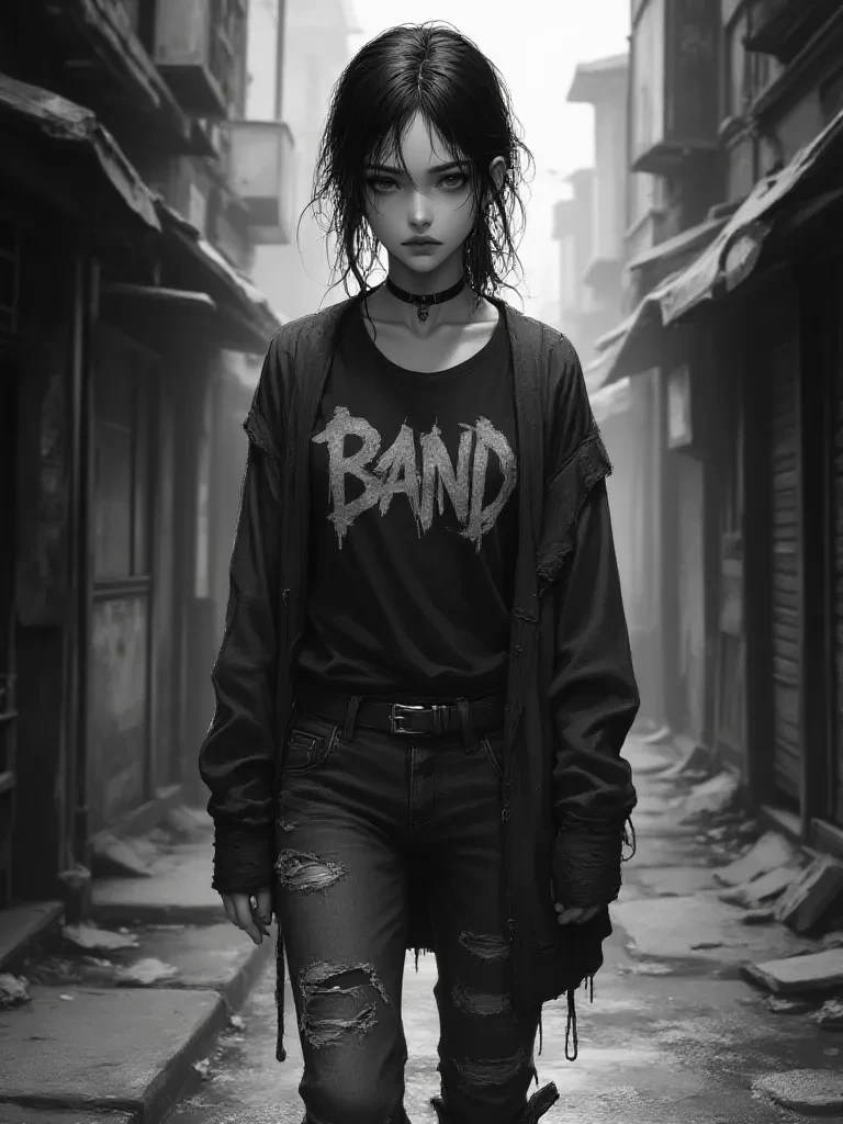 Crouched low, her slender frame almost swallowed by the cavernous shadows, a lone girl was meticulously arranging fragments of forgotten things on the grimy pavement. Her fingers, long and almost translucent, worked with an unsettling precision, creating a macabre mosaic under the faint, sickly glow of a single, flickering streetlamp. A tear, or was it a droplet of lingering rain, traced a path down her extraordinarily pale cheek, catching the faint light like a fallen star.