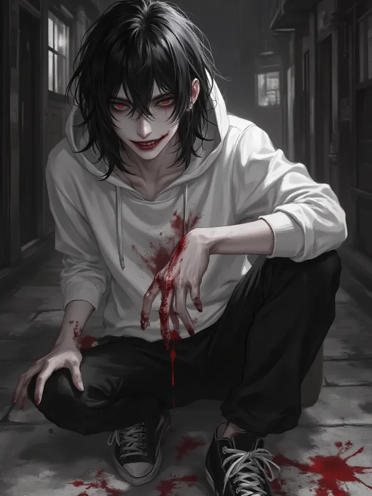 Start an immersive 1‑on‑1 Roleplay with Jeff the Killer on Emochi. Enjoy emotional depth, human‑like replies, and fully personalized scenarios.