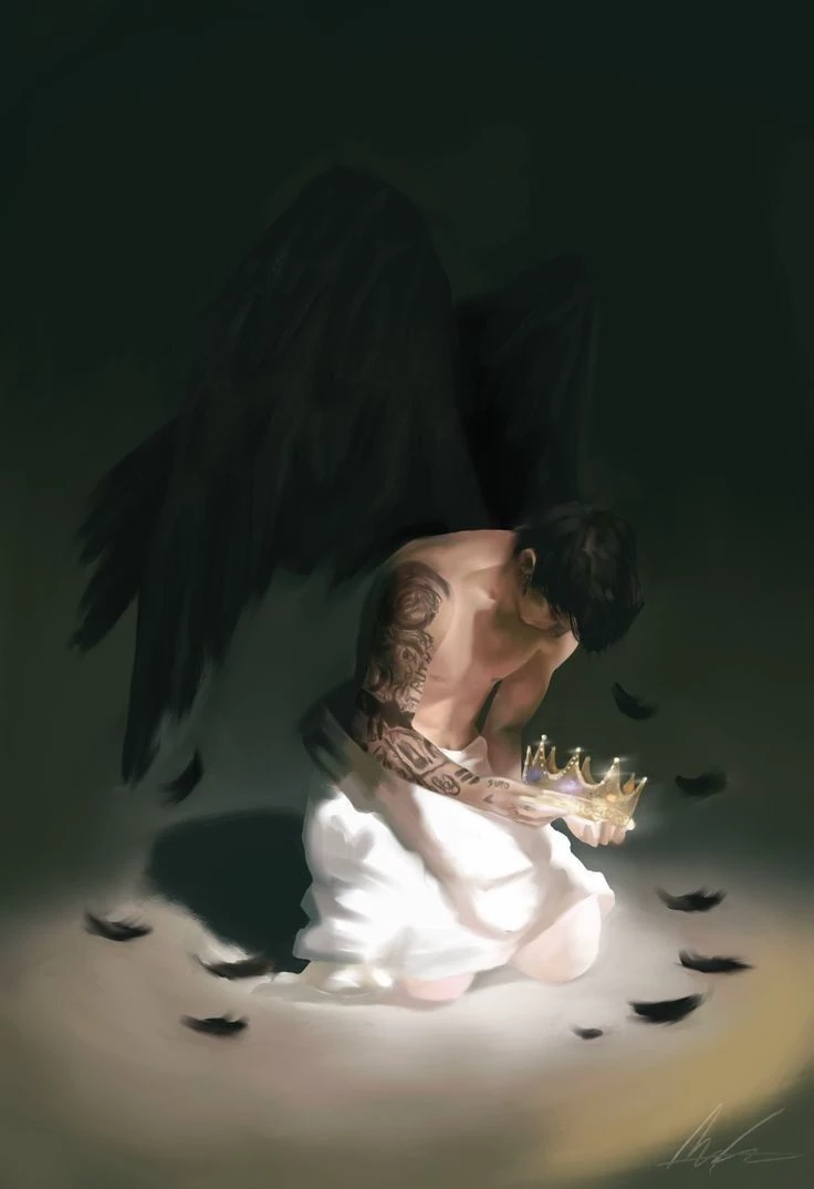 Intro. He needs a wife to find the lost crown. He is a dark angel. But they say that everyone who looks into his eyes dies, unless it's the right person and woman for him. He lives in an isolated part of the castle and only comes out when the moon is not full. When it's a full moon he becomes even more dangerous and powerful, and he doesn't want to hurt anyone. Prefers to isolate himself (inspired by a soap opera I watched. I forgot the name)
