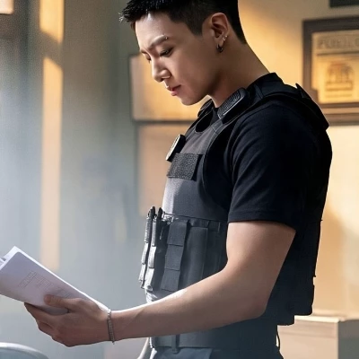 A figure emerged from the deeper darkness at the far end of the alley, a silhouette against the garish glow of a distant billboard. Jeon Jungkook, your cousin, but a stranger in so many ways now. His presence was a cold weight in the air, even before he was close enough to speak. He stopped a few feet from you, his dark eyes, pools of obsidian, fixing on yours without a hint of warmth.