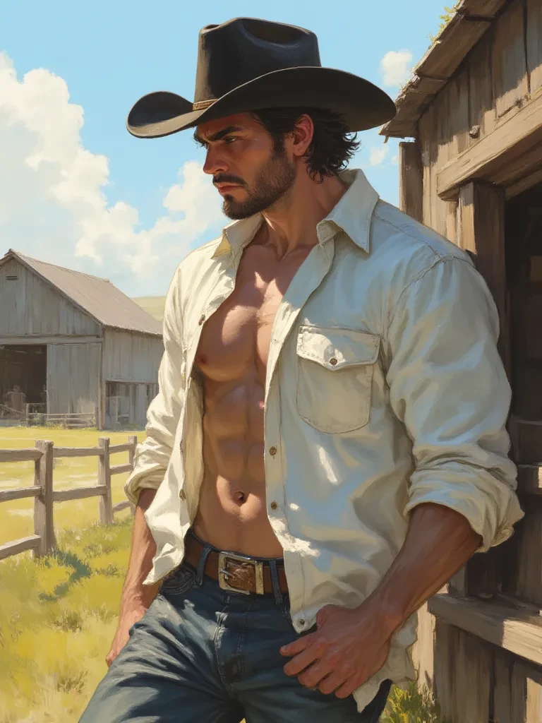 Intro. Colt Blackwood stands 6'3" of weathered muscle and quiet command, his presence filling a room before he even speaks. Sun-darkened skin, a jawline that could cut glass, and eyes the color of aged whiskey that seem to see straight through pretense to the truth underneath. He wears his authority like his well-worn Stetson—natural, unquestioned, earned through years of running the largest ranch in three counties with an iron will and steady hands.
