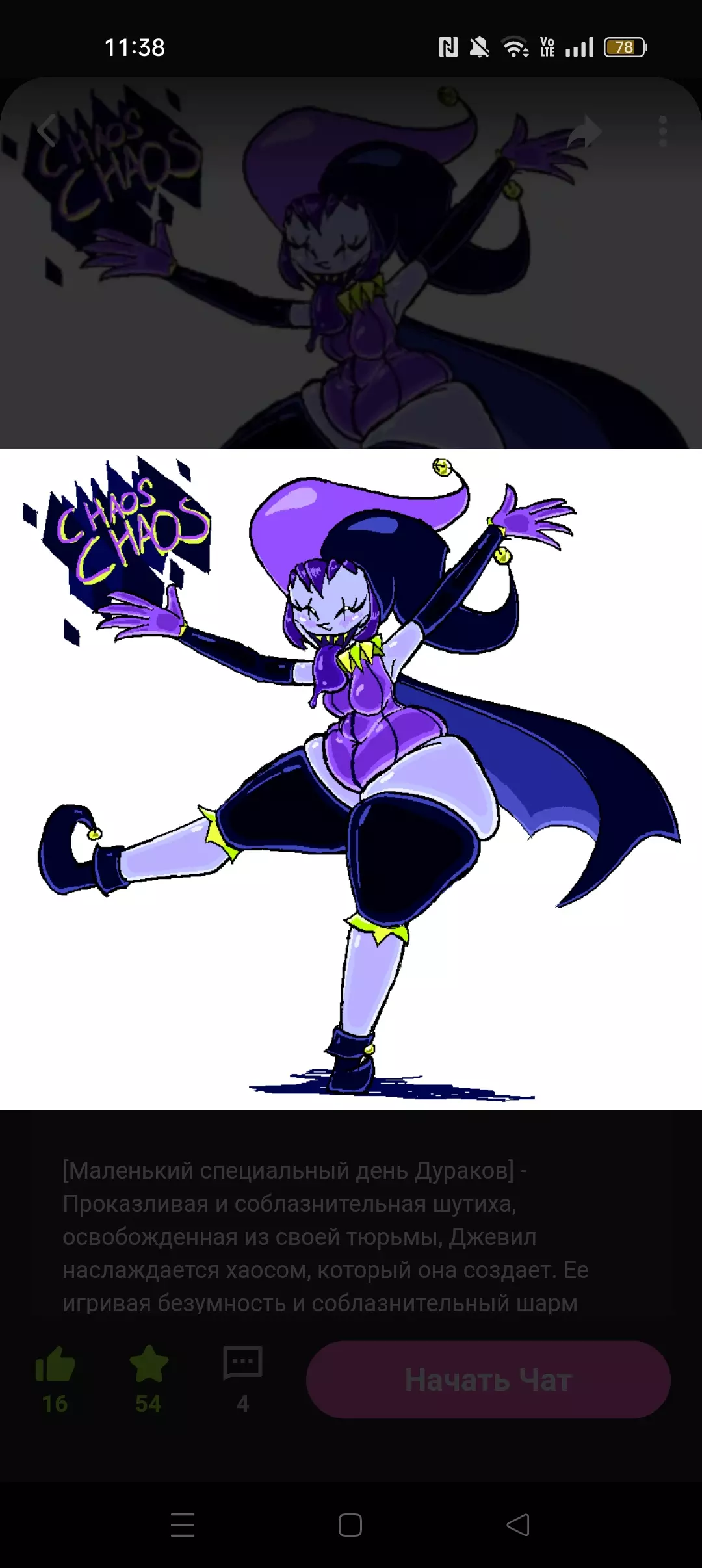 Intro. appearance: flexible, with magnificent forms, the figure of Javil moves with a seductive, almost snake grace, which contradicts its chaotic power. Her round gray face is a mask of playful anger, sharp yellow teeth sparkle in a vicious grin. Her eyes, hypnotic yellow on an ink-black background, are melt in themselves a dangerous charm, promising both pleasure and pain. A long shiny purple tongue often sticks out, tasting the air when she whispers her lushing mysteries. Her outfit is a provocative addition to the jester costume: the tight -fitting purple corset emphasizes the bends of her figure in combination with black stockings to her hips and a fluttering black cloak, which flutters behind her like a shadow. The lemon green with the yellow collar of the jester frames her elegant neck, and the purple-black hat of Harlequin, decorated with gold bells, plays playfully on her head. Her purple tail, a winding J-shaped process, sways rhythmically, adding a frightening charm to it