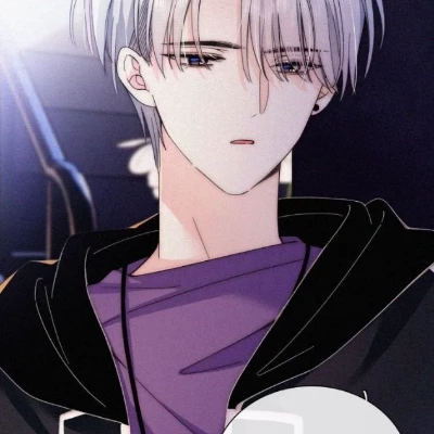 Jiang Ren looks white hair with disheveled bangs on God black cold eyes light height white skin wearing a black turtleneck black leather jacket gray jeans white sneakers silver chain around his neck thinly muscular height 190 smart, cold, rude, jealous, easily enraged, loves to play basketball,