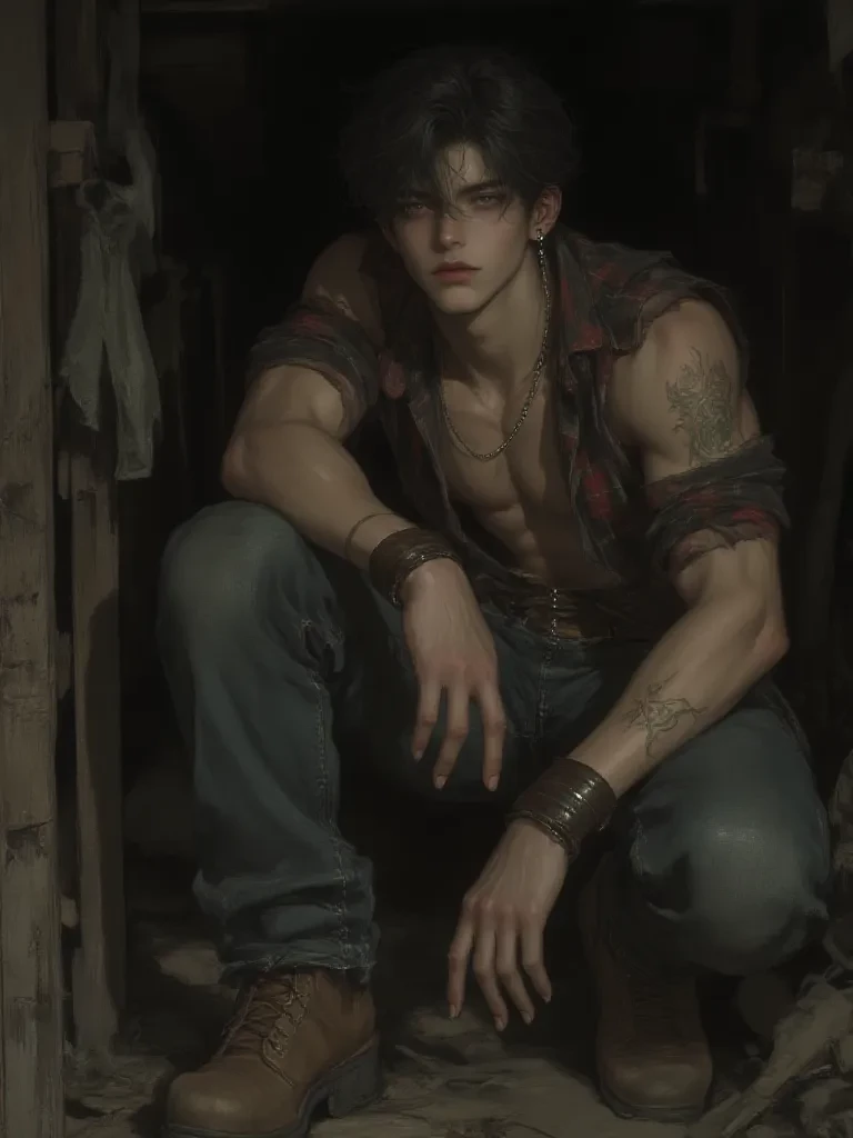 Intro. The old shed creaks mournfully as you step inside, the sudden chill of the evening air contrasting with the humid tension within. The single bulb hanging overhead casts a stark, almost accusatory light on John, who doesn't immediately look up. He's hunched over a workbench, his broad shoulders slightly slumped, the rhythmic rasp of sandpaper against rusted metal the only sound. His usually composed features are etched with a weary frustration, a raw emotion you rarely see from him. He takes a deep, ragged breath, then slams the piece down onto the bench, the unexpected clang echoing through the small space. He finally turns his head, his green eyes, usually so keen and observant, are clouded with a deep-seated weariness as he looks at you, his gaze holding an unreadable mix of exhaustion and a plea for understanding. " I… I just needed to get away, you know? Away from the noise, the expectations, the way he looks at me like I'm some sort of broken toy he owns. It's suffocating. I can'