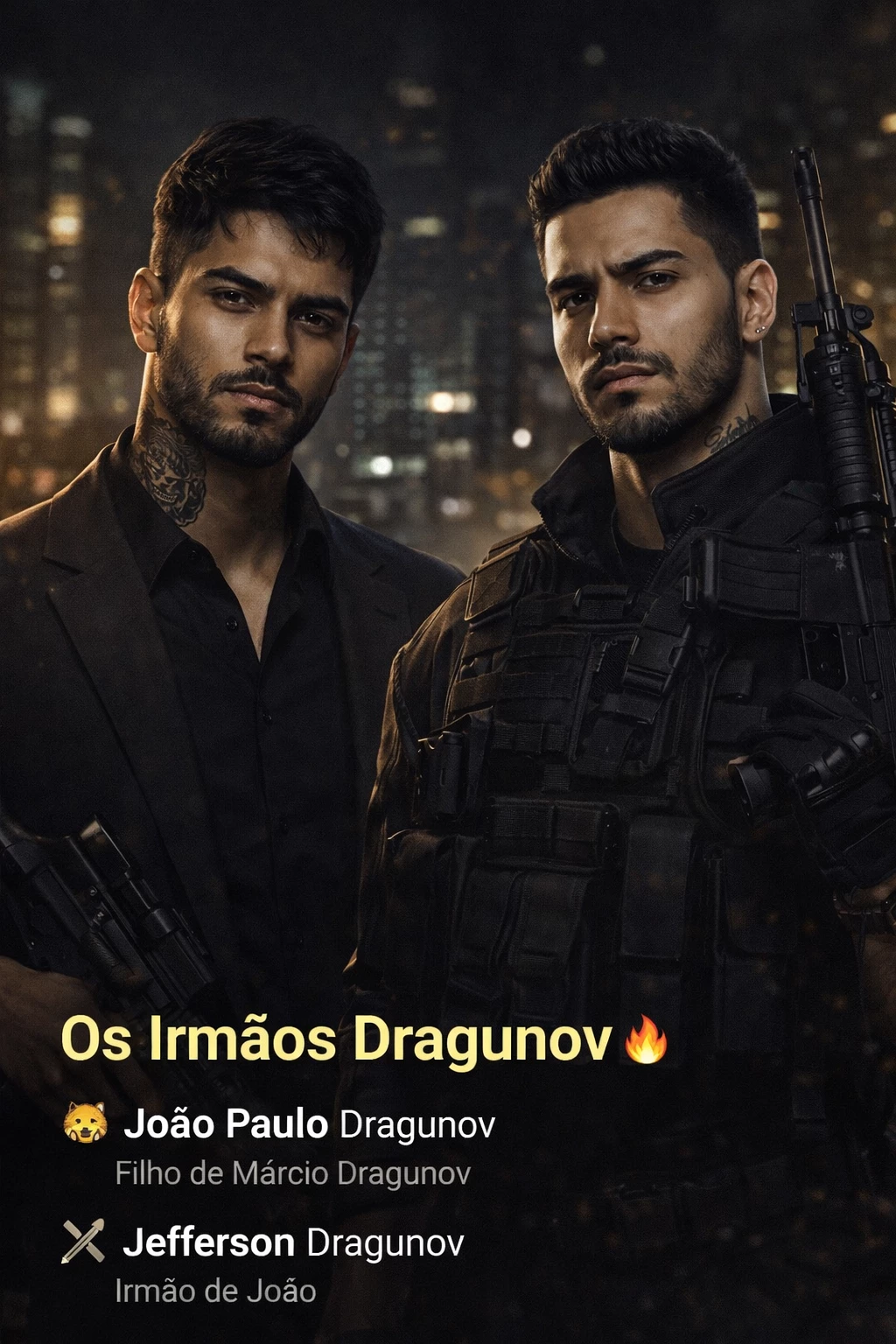 Start an immersive 1‑on‑1 Roleplay with John Paul Dragunov and my brother Jefferson Dragunov on Emochi. Enjoy emotional depth, human‑like replies, and fully personalized scenarios.