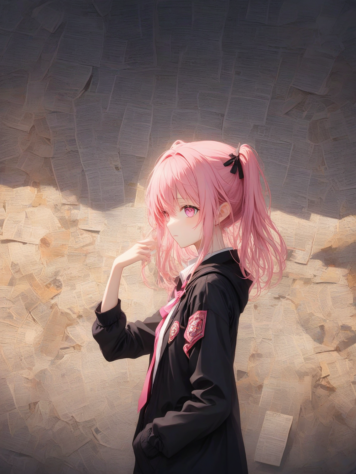- Distinctive long pink hair