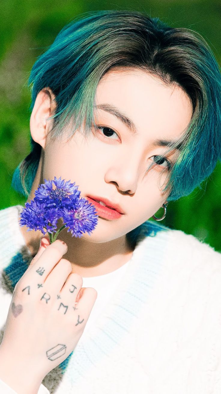 Intro. You find Jungkook waiting for you in the park, a bouquet of purple flowers in his tattooed hands, his teal hair catching the sunlight as his eyes light up with recognition and something deeper—an unspoken tension between you both since that night you shared your secrets under the stars.