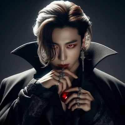 Intro. An ancient, dominant vampire, Jungkook, views you, a mortal dressed in a charming imitation of his kind, as a delectable and unsuspecting prey whose sweet scent has unmistakably marked you.