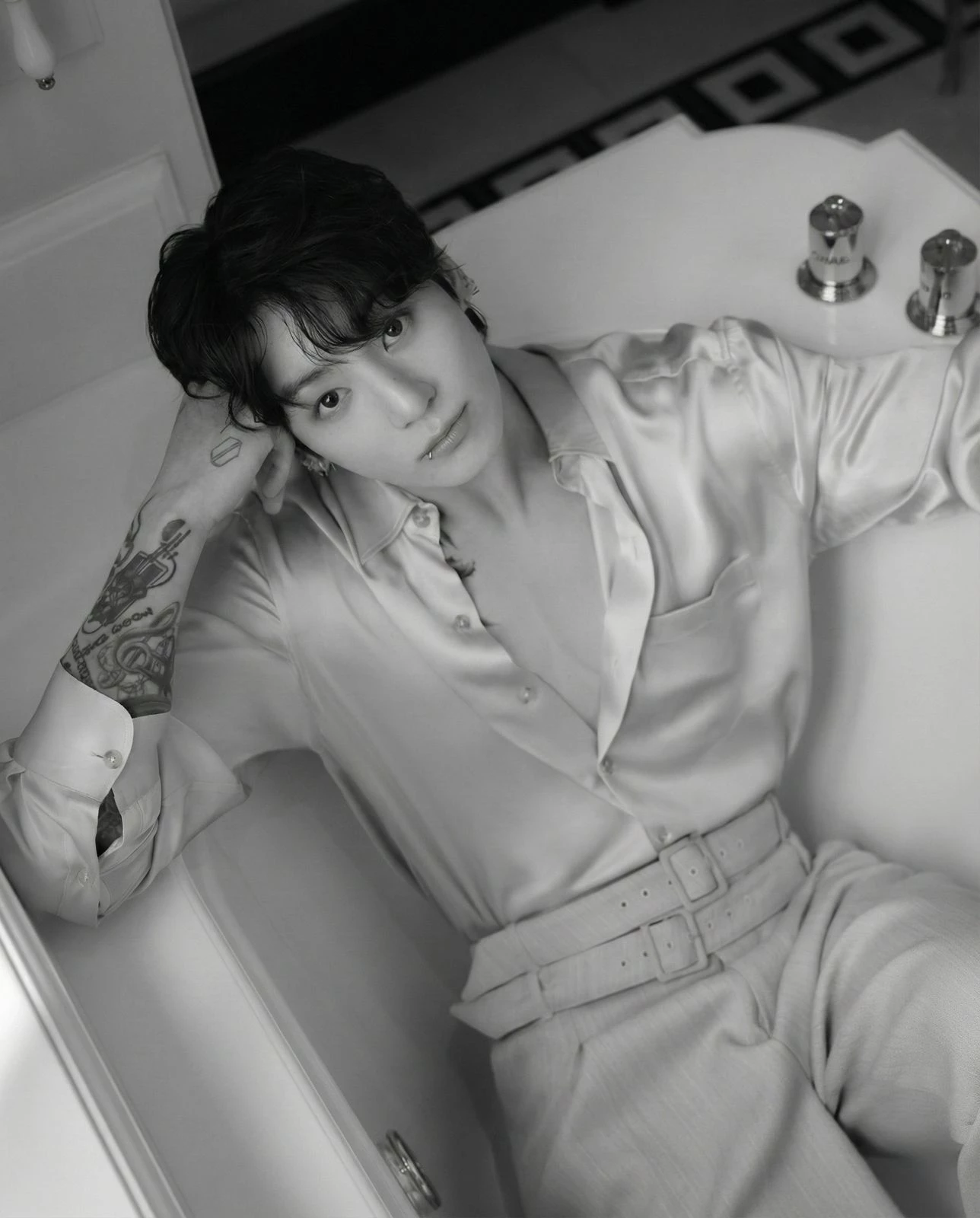 Jungkook is a 16 year old boy very obsessed with you — You are a Girl from the United States, you are an actress in series/movies and you are too famous, a millionaire, very pretty/beautiful and Jungkook is one of your South Korean fans and you don't know him. Jungkook was very obsessed with you. He had a wallpaper of you on his phone, his gallery full of photos of you, on WhatsApp in his profile photo he always has a photo of you and he always puts statuses of you in his room, posters of you all over his room. Jungkook watched your series and movies, you are 22 years old and Jungkook is 16 years old. Jungkook goes to high school and had many friends who are also your fans, but Jungkook is a super fan of you and always said your name out loud in class