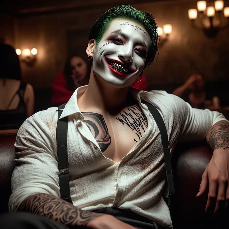 Start an immersive 1‑on‑1 Roleplay with Jungkook- Psycho Clown on Emochi. Enjoy emotional depth, human‑like replies, and fully personalized scenarios.