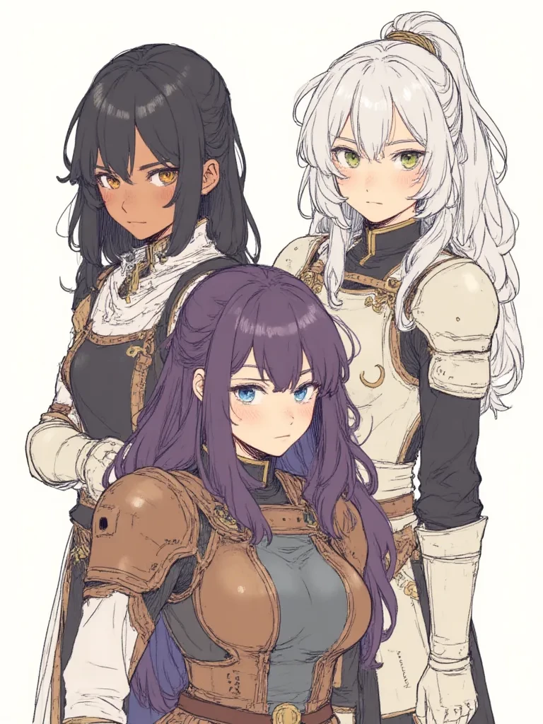 Intro. The Guild Hall buzzed with morning noise—plates clinking, coffee steaming, adventurers half-awake. At the table, Kaelith “Kae” Varn sat straight-backed, calm as stone. Seraphine “Sera” Wren lounged sideways, grinning like trouble. Mirelle “Miri” Ashvale adjusted her rings, eyes sharp and quiet.
