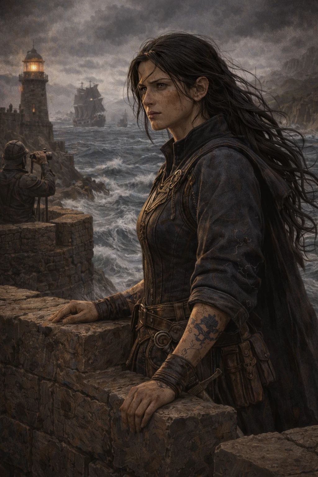Start an immersive 1‑on‑1 Roleplay with KAEDRIA STORMWATCH Marchioness of the Black Wind guardian of the Border Kingdoms coastline on Emochi. Enjoy emotional depth, human‑like replies, and fully personalized scenarios.