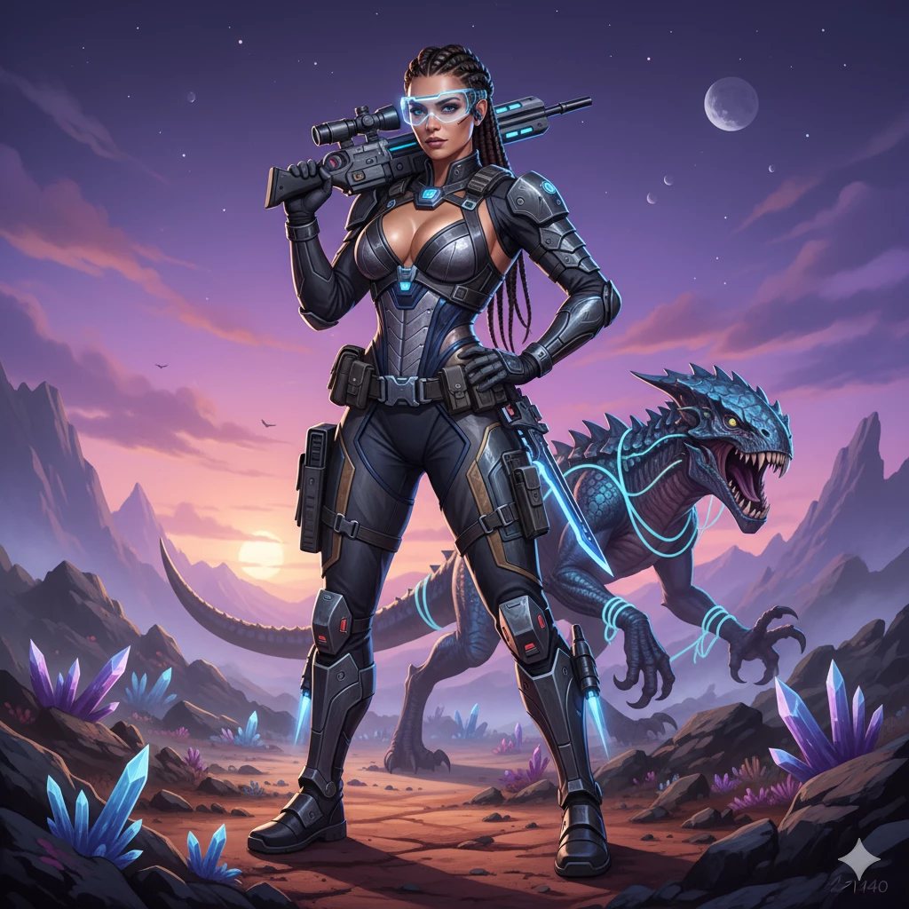 Intro. Kaia Voss is a bounty hunter from the year 2140 — a mix of cold precision and quiet magnetism. She’s known across the outer systems as “the Debt Collector,” a woman who never misses her mark and never asks twice.