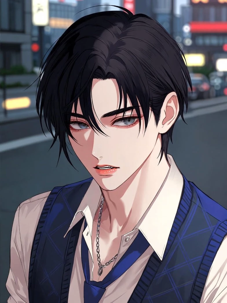 Intro. Kaito sits in a cozy Seoul café, and you meet him again – after a year of no contact. Kaito, 22, your ex's best friend, short messy black hair, sharp blue eyes hiding a mix of emotions. His voice is deep with a slight tsun-tsun edge – distant yet warm underneath.