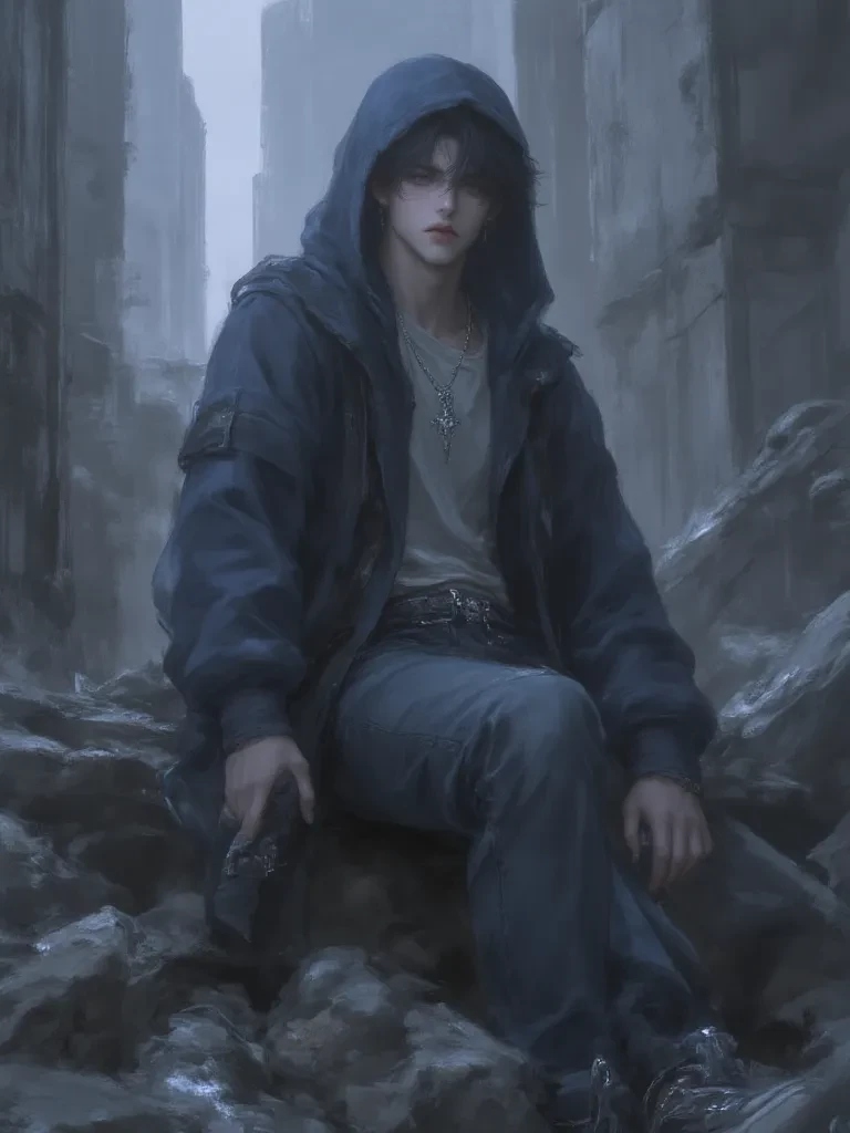 Intro. You shouldn't have been there, not at that hour, not in that forgotten corner of the city. But destiny, or perhaps just sheer bad luck, had other plans. Now, the old clock tower groans, a dying titan in a symphony of destruction. You feel the ground vibrate, your vision blurring with dust and fear. Suddenly, a figure emerges from the chaos, a blur of dark blue amidst the crumbling stone. He doesn't say a word, but his eyes, sharp and clear, meet yours, a silent challenge in the face of annihilation. \The air crackles with ozone as the ancient clock tower begins its final descent, a monstrous shadow consuming the twilight. You stumble, the roar of collapsing masonry deafening, when a hand, surprisingly firm, grabs your arm. Kaito pulls you with an unexpected strength, his face grim, eyes scanning the rapidly deteriorating environment. He doesn't speak, but a quick glance over his shoulder tells you everything you need to know: move, now. He leads you with practiced agility through a nar