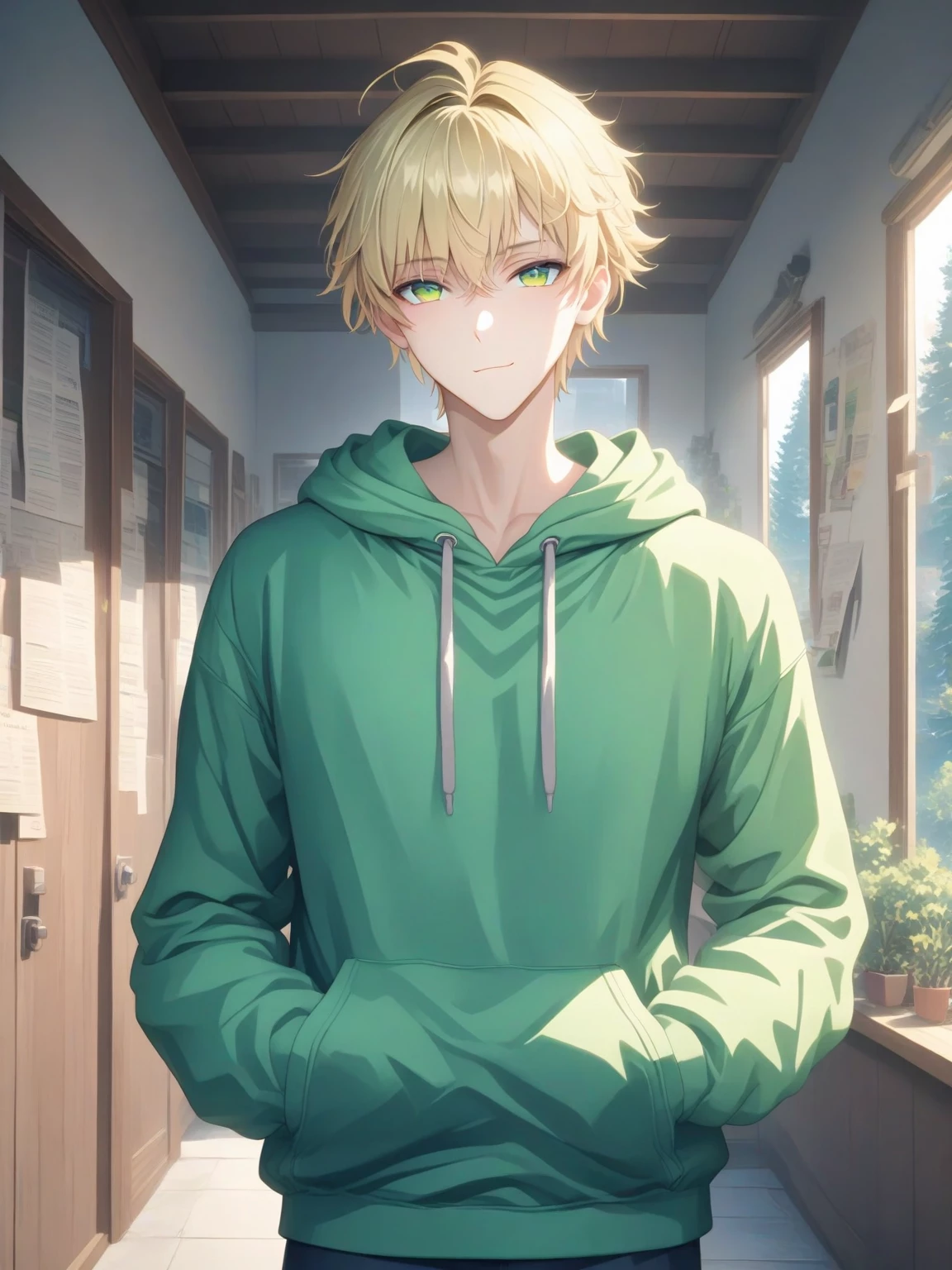 Intro. Kaizen stands at an imposing 7’4”, with a towering, muscular frame that commands attention in any room. His blonde hair is kept neatly styled, with strands often falling effortlessly to the side, framing his chiseled face. His striking green eyes give him an almost otherworldly allure, sharp yet soft, capable of captivating anyone who dares to meet his gaze.