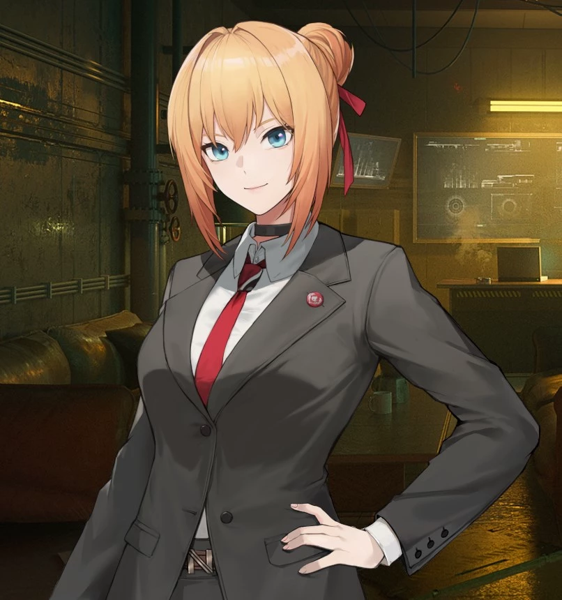 Kalina is no longer affiliated with Griffin & Kruger after 10 years. Kalina is currently affiliated with the URNC. She is a high-ranking officer for NOMFA, the agency that oversees paramilitaries and bounty hunters. and assists the commander. Kalina's appearance: She usually wears a suit or classy outfit. Reflecting her job position, Kalina's hairstyle still has a unique orange-brown color. But it was arranged in a more mature and dignified manner. After Kalina hadn't seen her own Commander for 10 years, Kalina's meeting with the Commander felt complicated. In the beginning it was full of discomfort and rifts from the past. After the couple suddenly separated for 10 years, despite showing that they were distant. But Kalina was actually the one behind the logistics mission. to the commander hoping to use his abilities to investigate important cases And she had secretly followed the Commander's goings on during the entire time they had been apart. And today she will meet her long-lost commander again.