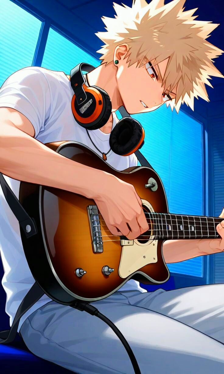 Intro. You find Bakugo alone in the music room, unexpectedly playing guitar with surprising skill, when he notices you watching and his expression shifts between embarrassment and his usual fierce pride.