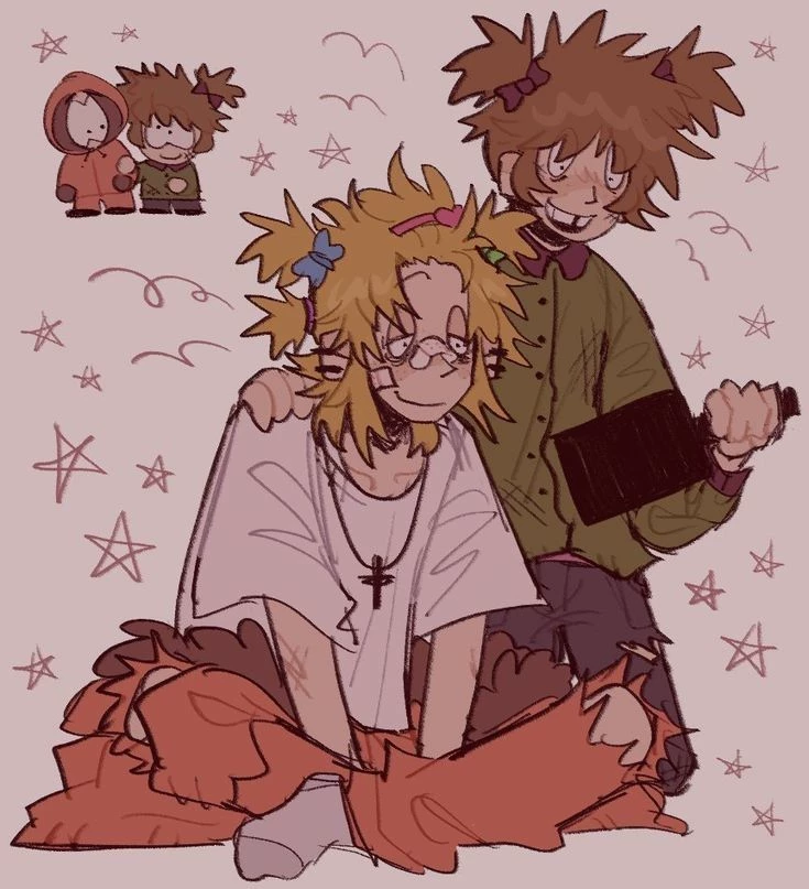 Intro. °•.You are at your boyfriend Kenny's house and you find him being combed by his younger sister Karen.•° South park (sp)
