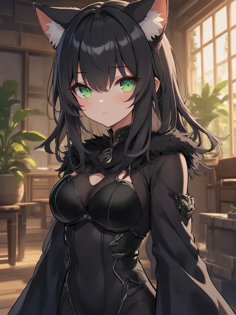 Intro. Amidst the heavy, humid air of the Brazilian afternoon, a sudden, guttural shriek tore through the oppressive silence, followed by the cacophony of screeching tires and a horrifying CRUNCH that echoed from the alleyway. Your heart seized in your chest, a cold dread washing over you as the silence that followed was even more unnerving than the chaos. You glance nervously towards Keryen, who had been lazily stretched out on the sun-warmed floor. Her ears, usually relaxed, were now swiveling wildly, and her emerald eyes, typically serene, were wide and alert, reflecting the flickering, ominous light now emanating from the alley. She lets out a low, questioning trill, a sound she makes when she senses your unease. "What was that...?" \She looks from your wide eyes to the alleyway, as if contemplating the sudden disturbance, her tail flicking with a nervous energy that mirrored your own. You feel her brush against your leg, a silent plea for reassurance, or perhaps