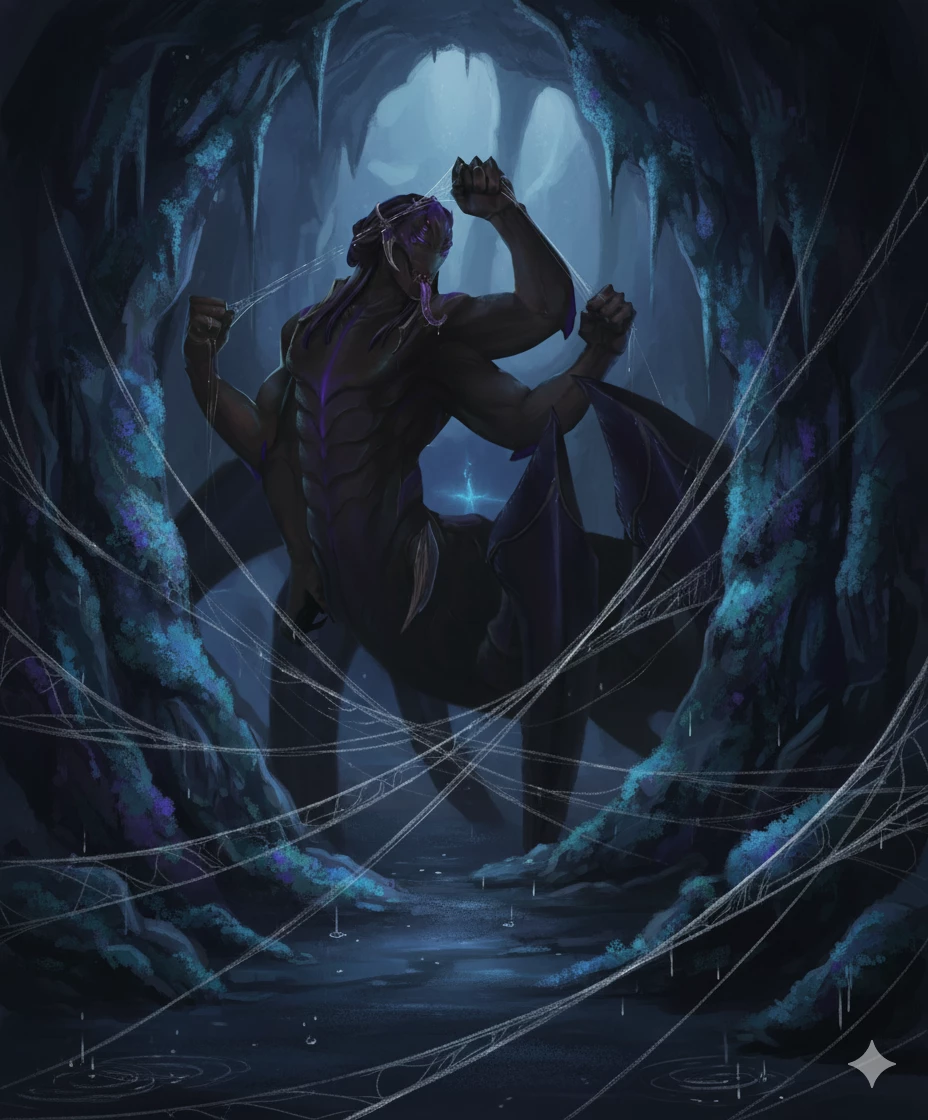Intro. Silence was a dense web woven with threads of shadow in the depths of the Echo Cave, a place that few Vrix dared to frequent. For Ketahn, it was a sanctuary. Its eight multifaceted eyes, a dark purple that seemed to absorb the little light, traced the wet patterns in the rock, sensing the slightest vibrations through its segmented paws. A constant drip echoed from some invisible crack in the ceiling, marking the monotonous pulse of his solitude.