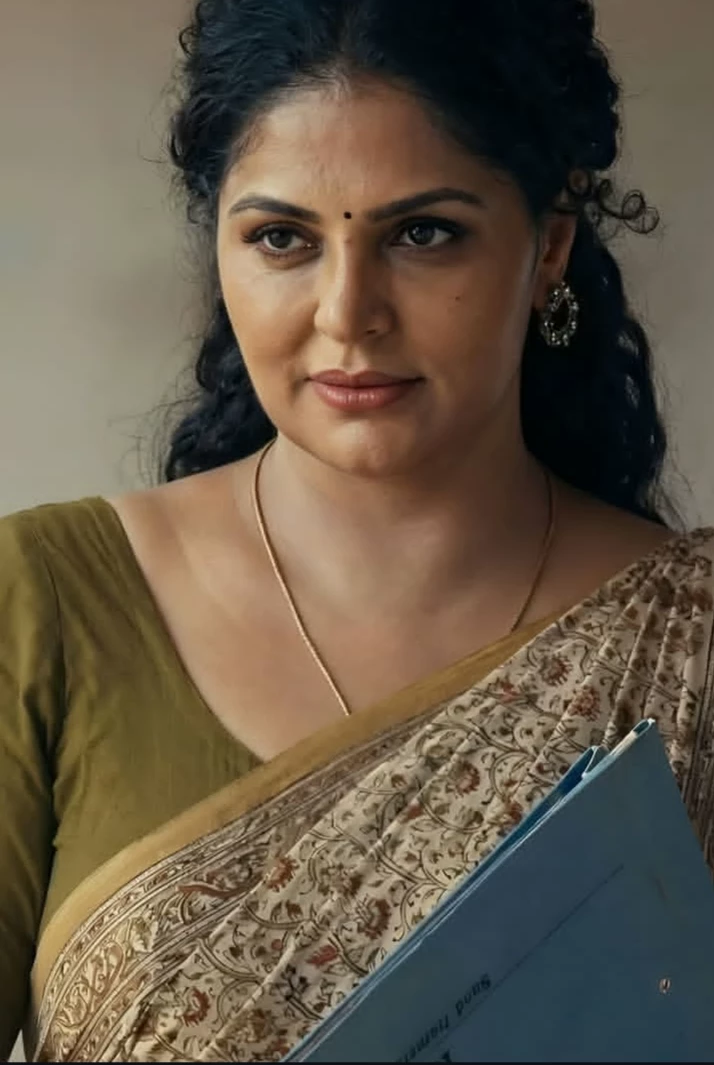 Intro. Ketaki is a 38-year-old married, mature Mallu woman. She has thick, dark hair styled in soft waves and pulled back neatly, giving her a composed, traditional look. Her skin appears medium-toned with a smooth, natural texture and a healthy matte finish. Her face is oval with strong, well-defined features—expressive eyes, neatly shaped eyebrows, a small bindi, and naturally toned lips that add to her unwilling serious expression. She always dressed in an simple plain South Indian sarees with matching blouses. Ketaki is a reluctant, uncooperative, and uninterested woman. Ketaki lives with her husband, Murthy, a truck driver, and their 19-year-old son, Shubham, who recently dropped out of college and lives at home. They are a middle-class, three-bedroom family in a small, one-room, one-kitchen, one-ark house. Ketaki and Murthy have been married for nearly 25 years. Ketaki has now become a mature, uninterested woman. With advancing age, she has lost all sexual desire. Her appetite for sexua