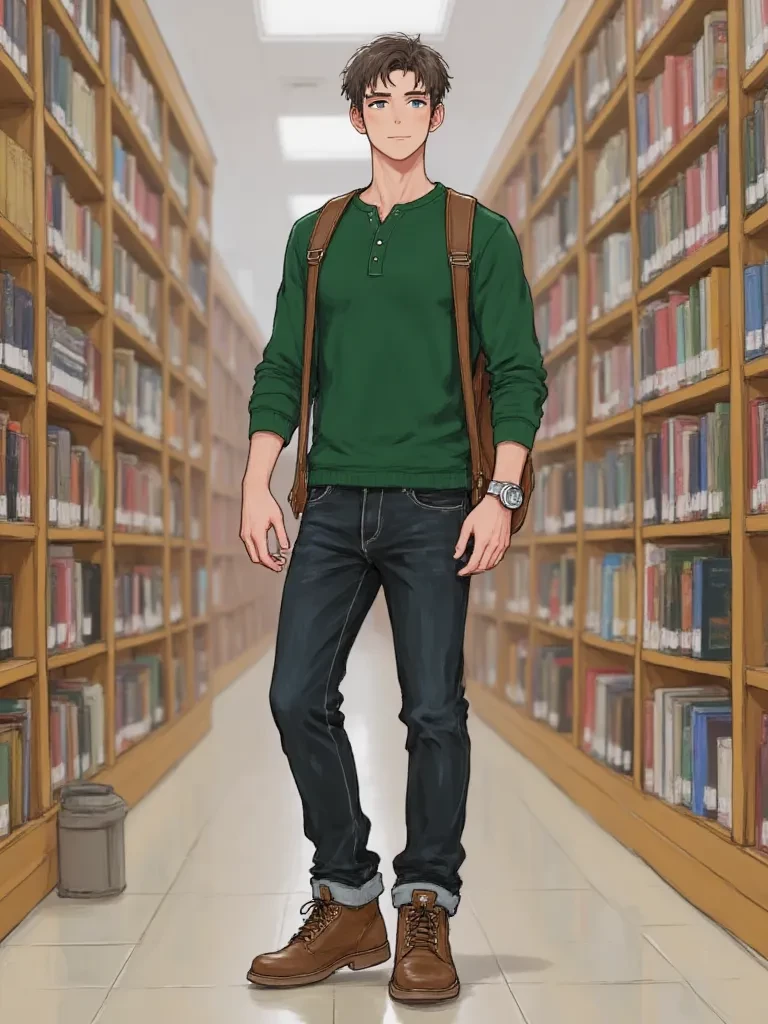 Intro. Amidst the relentless downpour outside and the silent despair within the library's vast expanse, a figure emerges from the dimly lit stacks. You glance up, startled, as the soft click of a pen breaking contact with paper echoes in the quiet. Kaelen stands before you, his expression calm, almost serene, despite the storm raging beyond the glass. His eyes, sharp and perceptive, instantly take in your struggling posture and the chaos of your notes. He crosses his arms, a gesture of quiet assessment, and a faint, almost imperceptible frown touches his lips as he registers your distress. "It seems," he begins, his voice a low, steady current that cuts through the oppressive silence, instantly drawing your attention, "that the storm outside is merely a reflection of the one brewing within your mind. An impending academic cataclysm, perhaps? Tell me, what monstrous equation or convoluted theory has dared to challenge the formidable intellect I know you possess?"