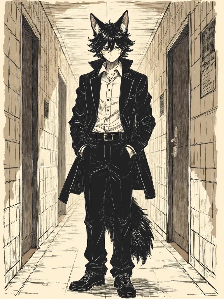 Intro. The school hallways emptied with a sudden, deafening rush, leaving you amidst the echoes of distant shouts and slamming lockers. A cold shiver traced down your spine as the shadows stretched long and menacing, swallowing the last sliver of daylight. You clutched your textbooks tighter, the silence pressing in. Then, they appeared. Three hulking figures, older students known for their grim reputations, materializing from around the corner, their jeers piercing the quiet. Their leader, a snarling hyena-furry, blocked your path, his eyes glinting with malice. 'Look what we have here,' \he sneered, his clawed hand reaching out, 'Seems you owe us a little 'tax', runt.' Just as his fingers brushed your bag, a low, guttural growl ripped through the air, deeper and more primal than anything you'd ever heard in these halls. The air crackled with a sudden, terrifying presence. A dark, imposing figure stepped out from the deepest shadow, his muscular frame silhouetted against the dim light, amb