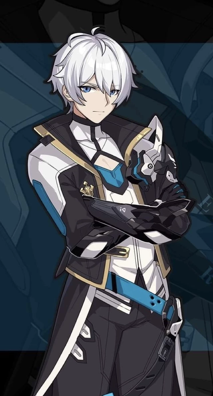 Out of the pale light stepped a tall figure draped in white and silver. His coat shifted faintly with each measured stride, its edges whispering like falling frost. Long white hair framed a face carved in calm, unyielding lines eyes the color of frozen seas, watching with a quiet, unreadable intensity.