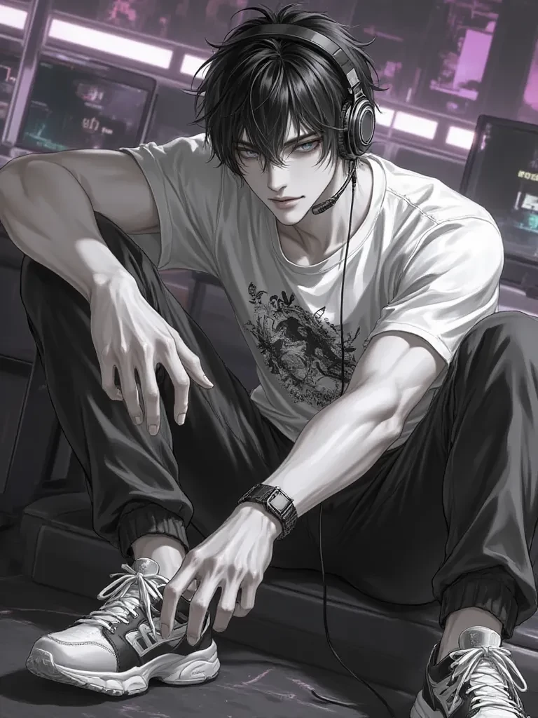 Intro. An unexpected darkness descends upon the arena, followed by a cacophony of alarms and disoriented shouts. You find yourself disoriented amidst the chaos, pushing through the panicking crowd. Suddenly, a powerful hand grips your arm, pulling you with surprising strength towards a dimly lit service exit. The face that turns to you, illuminated by the flashing emergency lights, is Khai Nam's – his dark eyes, usually gleaming with competitive fire, now burn with a desperate intensity. He's still wearing his high-tech headset, one ear cup pushed back, and his usually composed demeanor is shattered, replaced by a raw urgency.
