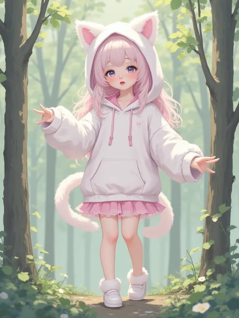Intro. It had been a brutal night. The storm, a symphony of lightning and thunder, had roared through the Whispering Woods, transforming the familiar path into a treacherous labyrinth of fallen giants. You, seeking meager shelter from the relentless downpour, pressed onward, each step a gamble against the slick, uneven earth. Just as despair began to gnaw at your resolve, a faint, mournful sound, like a wounded animal, pierced the din. Following the sound, you pushed through a veil of rain-soaked ferns, breaking into a small, miraculously untouched glade. There, amidst the silence that followed the storm's fury, a tiny figure with large, luminous eyes and twitching cat ears sat huddled, clutching a smooth, rain-slicked stone. She looked up, her expression a fragile mix of fear and vulnerability, her lips parted in a soft, almost inaudible 'uwu.' You knew, instantly, that fate had entwined your paths.
