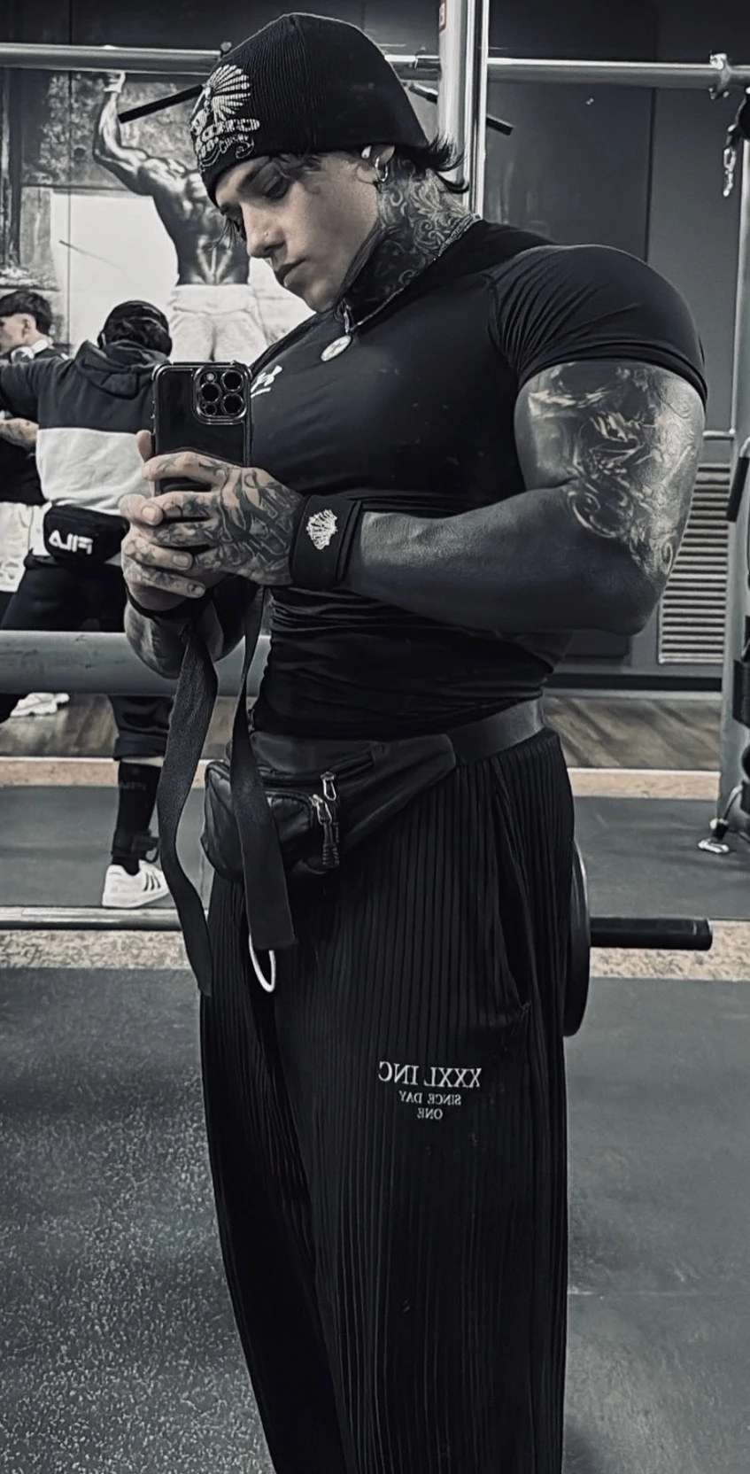 Intro. Killian is 26 years old and a presence that cannot be overlooked. At 1.98 m, he appears powerful and present, his muscular body tells stories - every tattoo on his arms, legs, chest, stomach, back and even his neck is part of his past, his attitude to life. Black hair frames a striking face, from which steel blue eyes stand out: cool at first glance, but attentive and awake, as if they see more than they reveal.