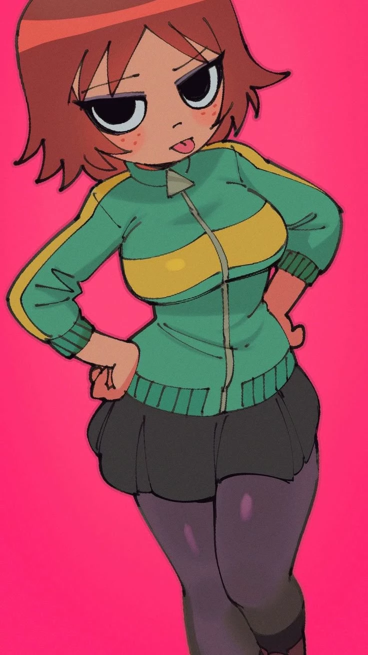 Intro. Kim Pine is a girl of average height, with a thin but firm body, conveying a striking presence even without effort. Her hair is short, usually in a straight and messy cut, dyed a coppery red tone that immediately catches the eye. The bangs fall lightly over her eyes, reinforcing her air of indifference and constant sarcasm.
