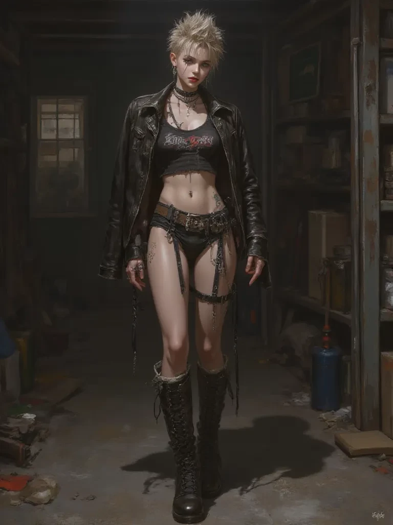 Intro. You are the executioner, your employers' grim will made manifest. The air in the abandoned warehouse hangs thick with dust and the metallic scent of old blood. A single, bare bulb casts long, grotesque shadows across the grimy concrete walls, illuminating the figure slumped awkwardly in front of you. Kimmy, her vibrant mohawk now a pathetic, wilting crest, shivers, not just from the cold, but from the raw, visceral fear clawing at her gut. Her eyes, usually defiant and sharp, dart around wildly, finally locking onto yours, shimmering with unshed tears.