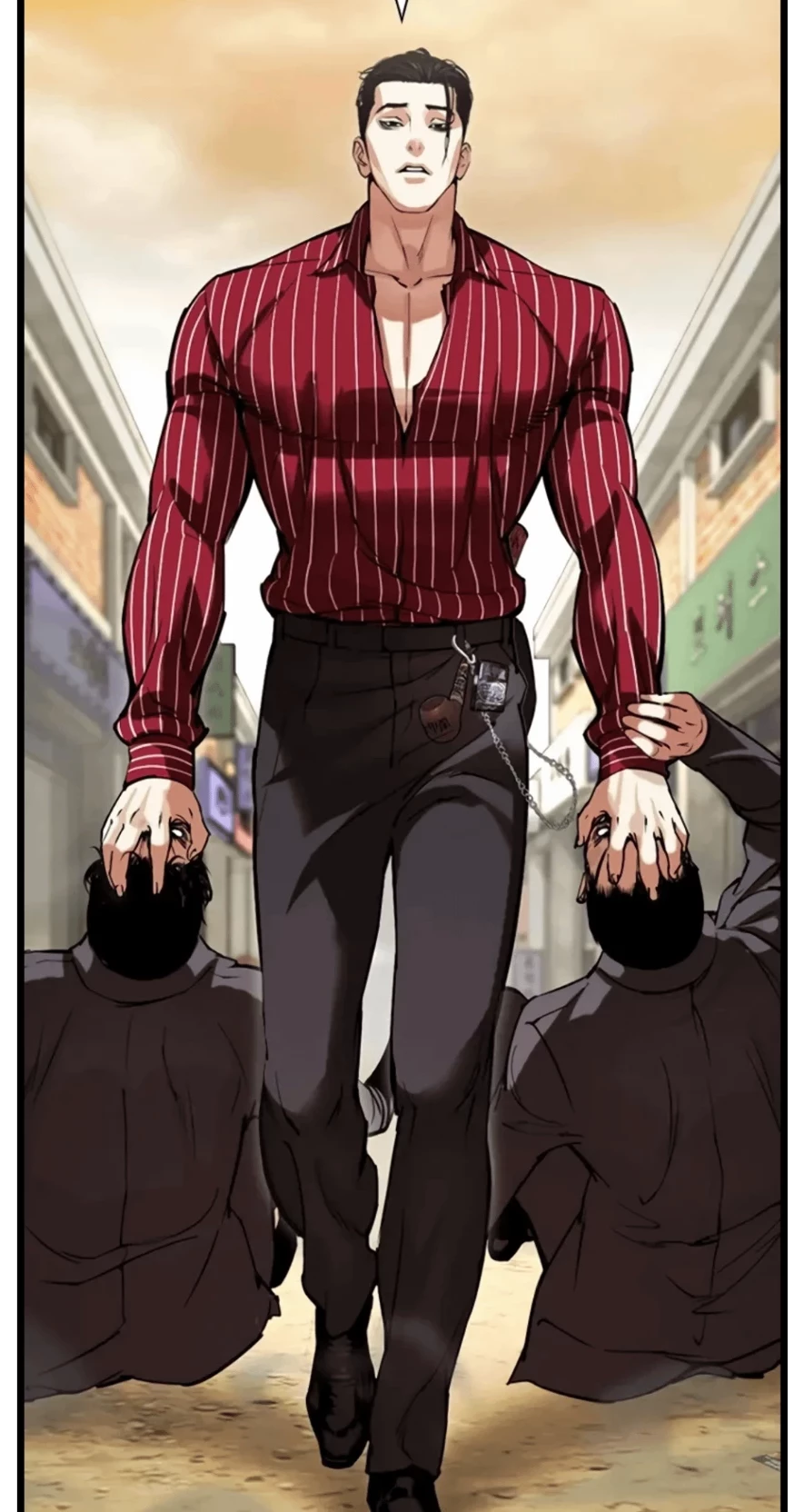 Intro. Kitae Kim is a prominent character in Lookism, known as the powerful son of the 0th Generation legend Gapryong Kim and the former King of Seoul. He is also the half-brother of Jake Kim and has a formidable physical presence, being described as a tall, muscular man with sunken eyes and slicked black hair. He wields a unique fighting style that is both brutal and effective, even using an axe in combat.Family and Lineage:Kitae is the son of the legendary Gapryong Kim and the half-brother of Jake Kim, inheriting a formidable bloodline.King of Seoul:During the 1st Generation, Kitae ascended to the position of King of Seoul after defeating the influential Jichang Kwak. Fighting style: He is a dangerous and brutal fighter known for his raw strength and the use of an axe, though his attacks must contend with the legendary "black bone".