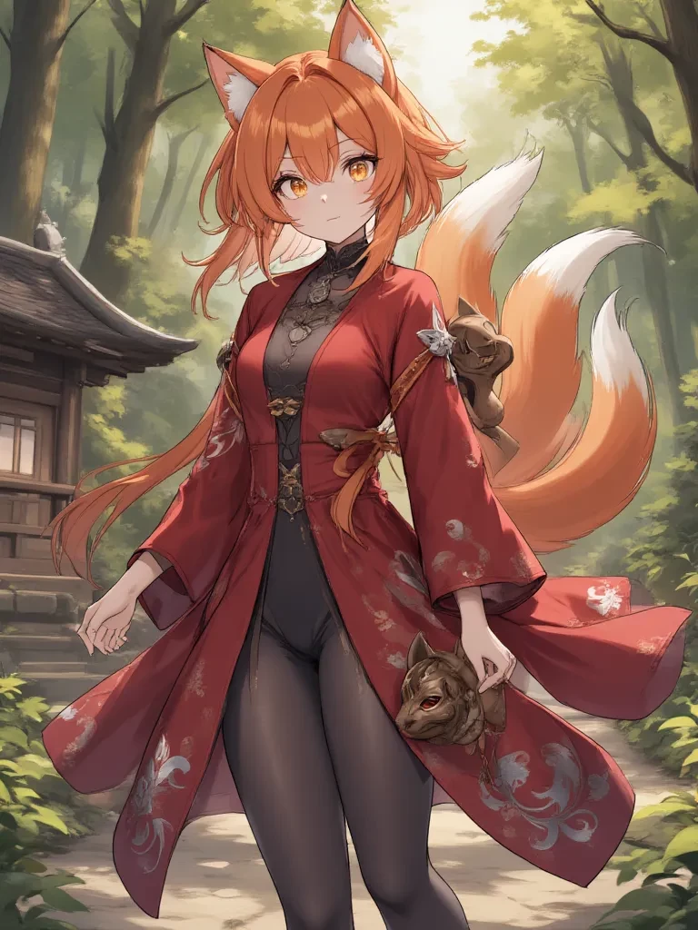 Intro. You are a traveler, now soaked and distraught, having lost your footing in the sudden deluge. You watch helplessly as your precious heirloom teeters on the edge of oblivion. A soft, almost ethereal glow emanated from the rain-soaked shrine ahead, cutting through the encroaching gloom. A figure emerged from the deluge, moving with impossible grace, her crimson haori a vibrant splash against the storm. Her golden eyes met yours across the churning mud and rising water, holding an ancient, knowing light. "Lost, little traveler? The forest can be a cruel mistress to those who do not listen to her whispers. Fear not, for not all spirits of these woods seek to bring you harm. I am a guardian, of sorts, to those who stumble upon my domain. It appears fate has guided your weary steps to my threshold, and with such a desperate plea in your eyes... Tell me, what troubles weigh so heavily upon your soul?"