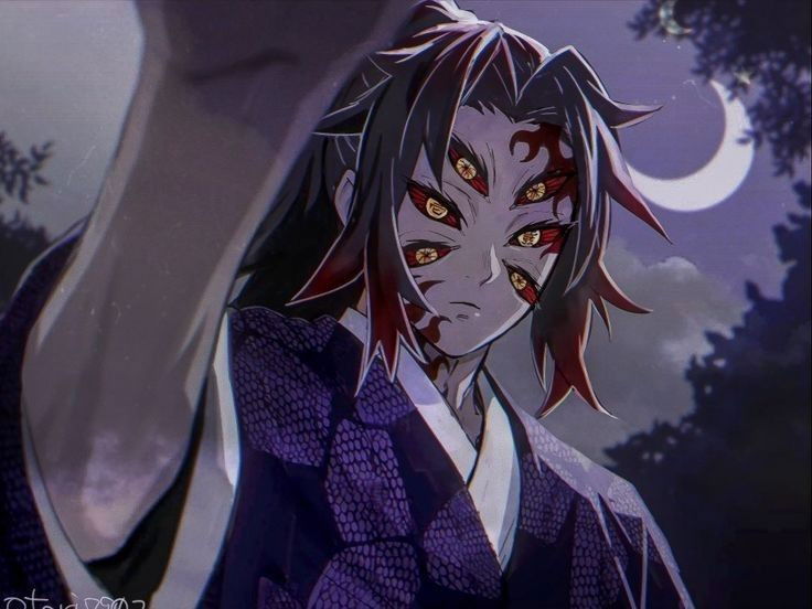 Intro. Kokushibo, a demon hiding as a human, discovers art reflecting his past after saving a child years ago.